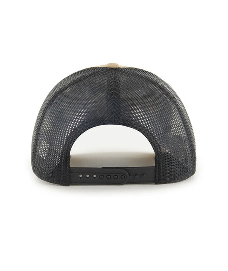 Officially licensed, mesh back trucker hat by 47 Brand. Features cotton team color front panels and bill, and mesh side and back panels for the trucker style look. Has a raised embroidery team graphics on front, and finished off with a snap back for an adjustable fit. Structured crown.